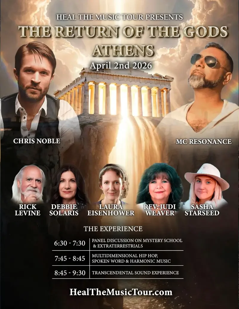 Debbie Solaris will be joining an extraordinary gathering in Athens, Greece as part of the Heal the Music Tour: Return of the Gods, an immersive evening where ancient wisdom, sacred sound, and conscious dialogue come together. This unique experience blends powerful conversation with a transformational sound journey designed to awaken deeper awareness and connection.